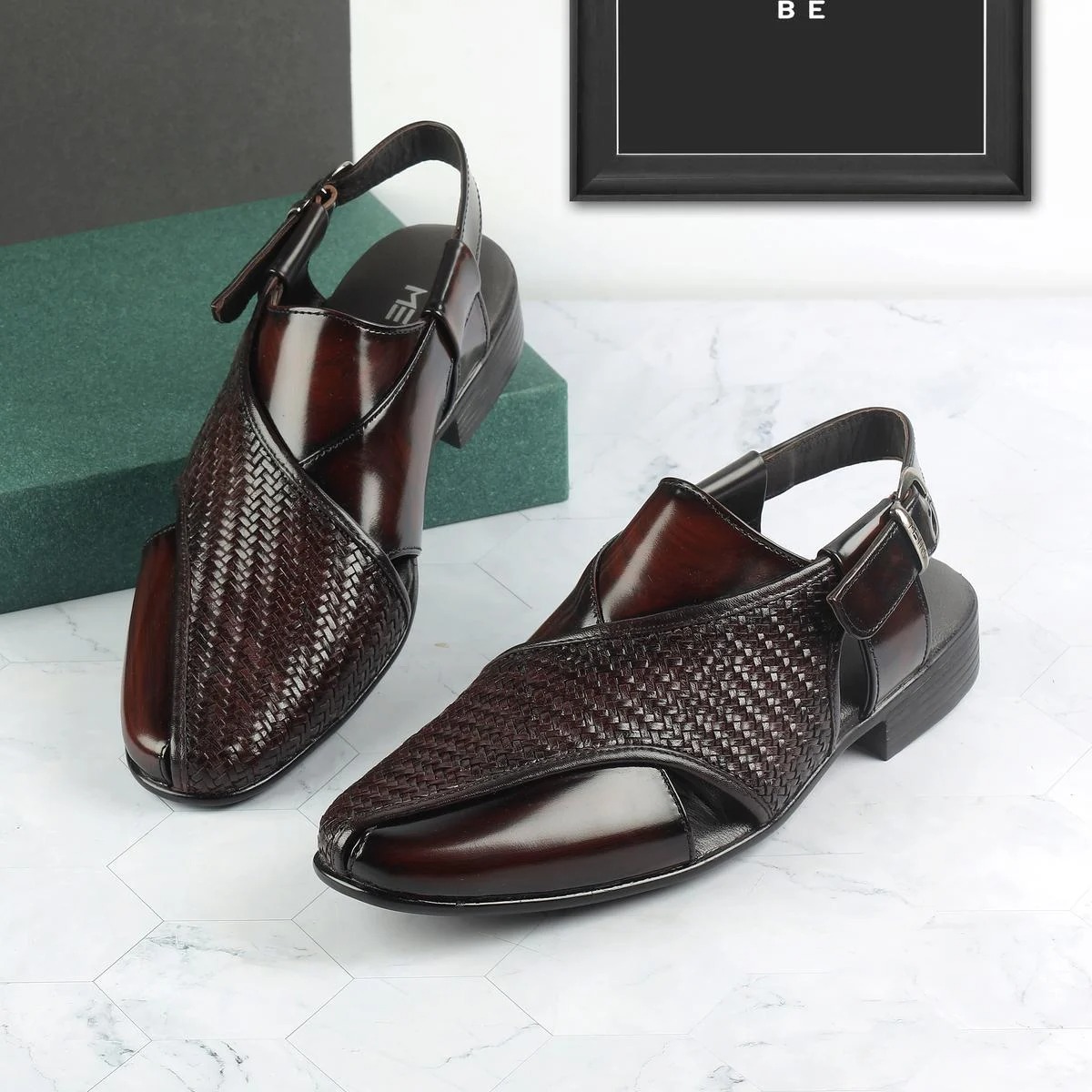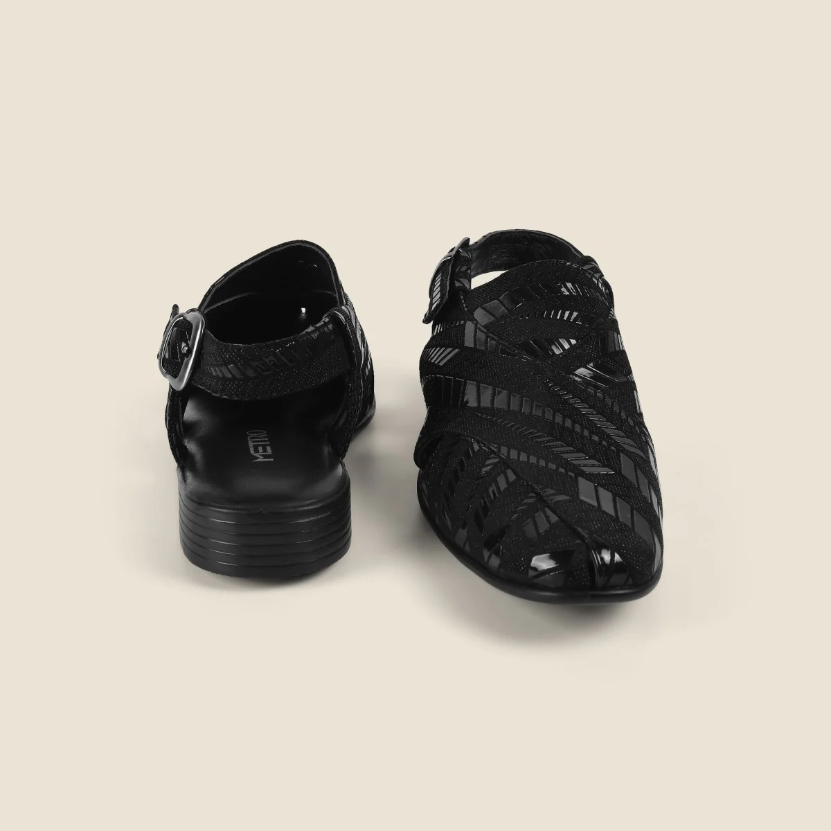 Traditional meets contemporary in these premium leather Pathani sandals from Metro. Featuring a textured leather design and open-toe structure, these sandals provide the perfect blend of ethnic elegance and modern craftsmanship.